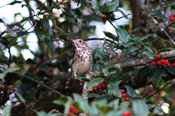 You never know what you will find on Holly Hill. The amount of food available in this collection brings a variety of birds, including this hermit thrush. Hermit thrushes can be seen in our area during migration and the non-breeding season. Just like other thrushes, the hermit thrush has a beautiful flute-like song that can be heard just before it migrates in the spring.