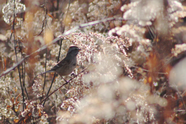 One winter sparrow that is rarely seen in the Bird Watching Garden is the American tree sparrow. There is a much higher chance of spotting this sparrow in the natural areas at The Arboretum like Dutch Fork Wetlands, where this tree sparrow was feeding on goldenrod seeds.