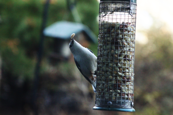Nuthatches are some of the most entertaining birds to watch in the Bird Watching Garden. Aside from some of their fun behaviors like spending a lot of time upside down, they are also tough birds that will defend their place at the peanut feeder if other birds try to knock them off. This is a white-breasted nuthatch, a species that is with us throughout the year. At certain points throughout the winter we are sometimes visited by their close relative the red-breasted nuthatch.