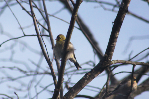 We have really jumped right into freezing temperatures which means more birds relying on the food in the Bird Watching Garden. Goldfinches are typically very tiny birds but frigid temperatures this morning led them to puff themselves up. When birds puff out their feathers, they are trapping a layer of air between their body and the outside air. The trapped air warms up from the bird’s body heat and provides a barrier. It insulates similarly to down jackets.