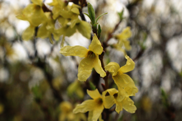 Forsythia is another favorite spring bloom. These shrubs act as an indicator that spring is on its way but has not yet arrived. According to folklore, from the time forsythias bloom, three more snow falls can be predicted. While the actual number of snows may vary, blooming forsythias do suggest we are not quite done with winter yet, especially at the start of this week!
