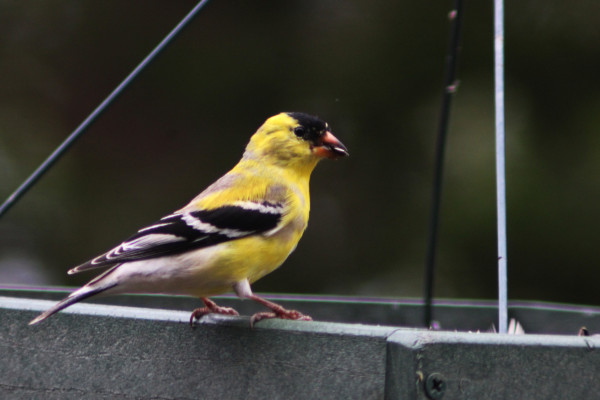 It’s not just the flowers that are colorful this time of year, the male goldfinches have changed a great deal since the winter! Male goldfinches change from an olive color to the brightest, clearest yellow as well as gain a black cap on their head and brighter orange beak. As you can see from this photo, this male is not fully finished molting yet as he looks a little patchy, but he should be soon!