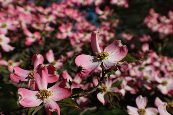 New plants continue to bloom around The Arboretum each week. Flowering dogwoods are a native small tree. Pictured here is a Cherokee Chief flowering dogwood, but naturally occurring pink varieties occur occasionally as well. Dogwoods serve an important role in the calcium cycle of a forest by taking up calcium from deep in the soil and concentrating it in its leaves and other tissues.