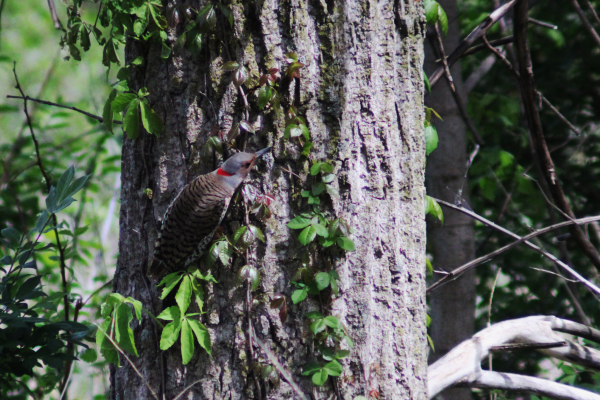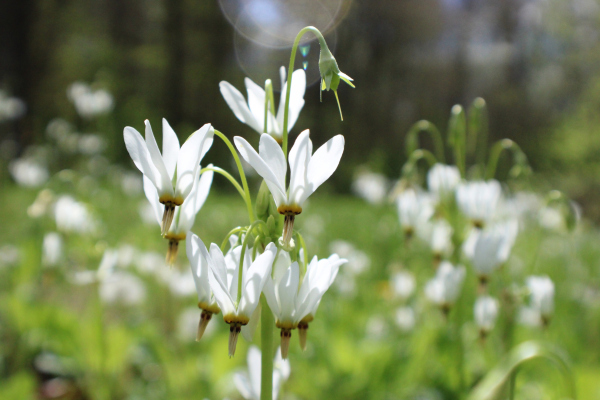 Just south of the Bald-Cypress Swamp is a large patch of blooming eastern shooting star. These unique spring ephemeral wildflowers are not a very common wildflower in Ohio. These flowers don’t produce nectar but still attract native bees with their pollen. They are pollinated through buzz pollination, with bees releasing the pollen from their anthers through vibrations.