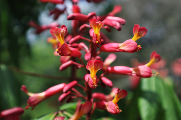 Red buckeyes are also blooming right now. They are a near-native species, growing naturally in the southeastern United States. The red, tubular flowers are very attractive to hummingbirds. This is good news as we have had our first ruby-throated hummingbird sighting of the year at The Arboretum over the weekend!
